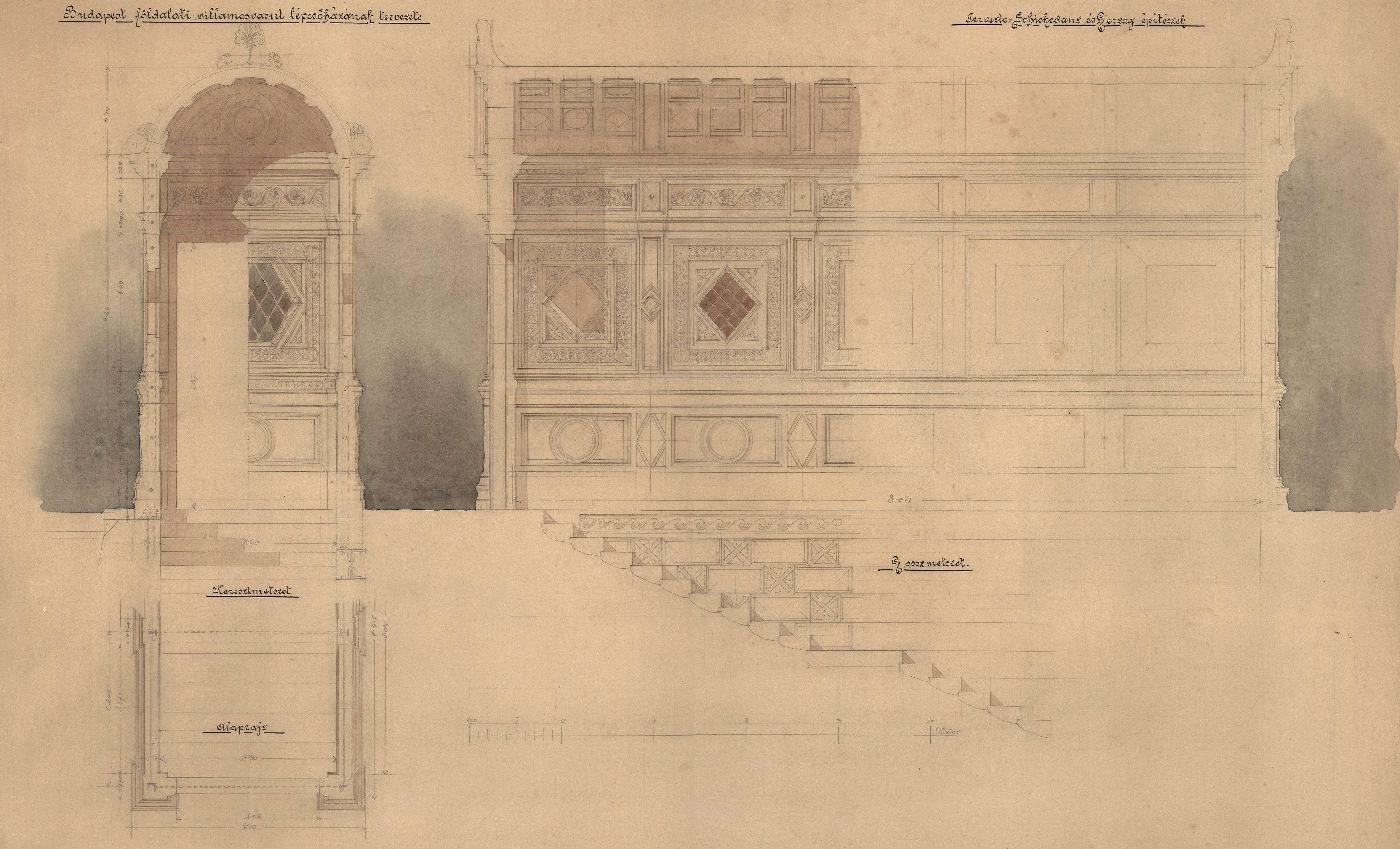 A budapesti földalatti villamosvasut lépcsőházának tervezete