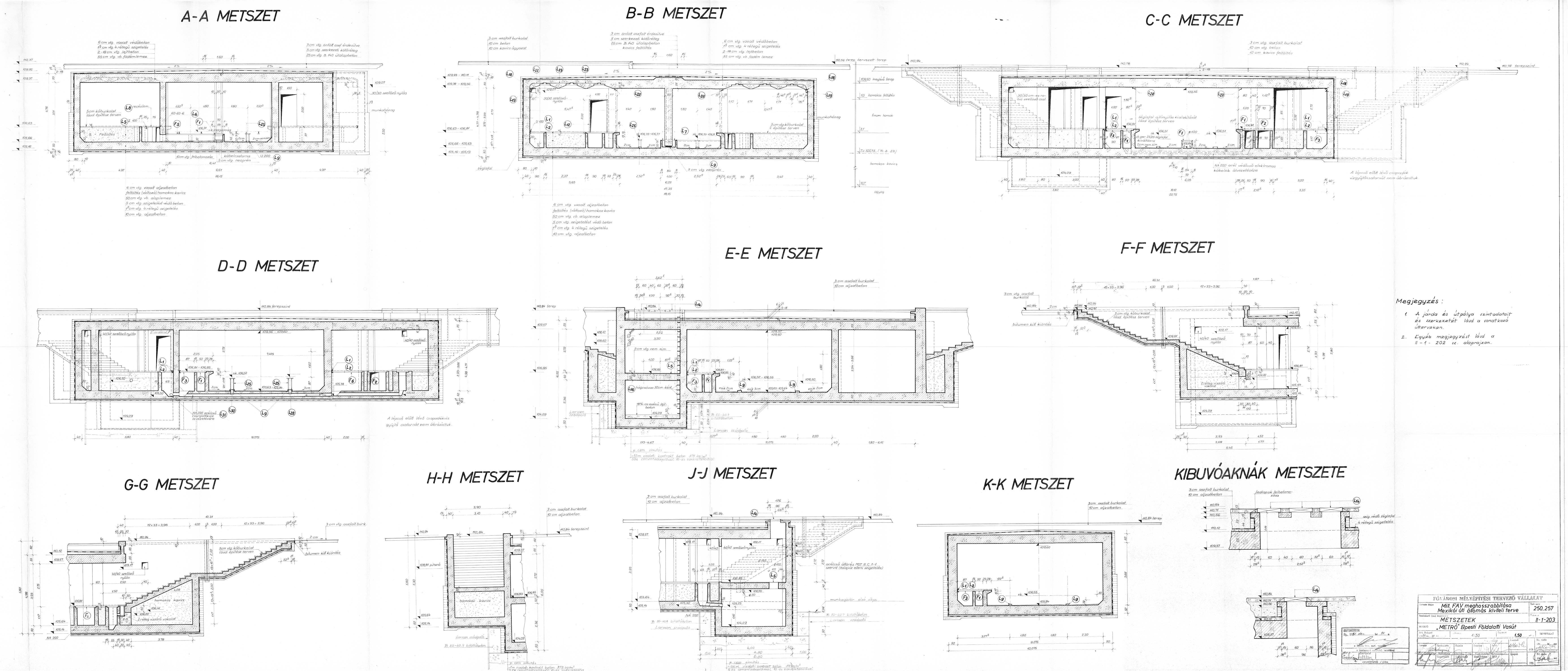 galéria, M1 metróvonal, műszaki rajzok, ábrák